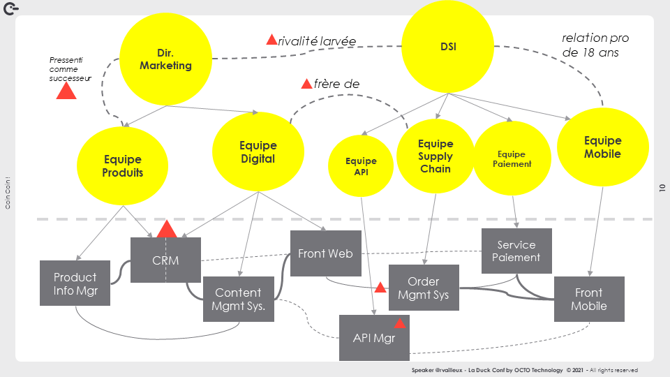 Melvin Conway a observé que les structures de communication des humains influencent directement le design des systèmes techniques d’une organisation.