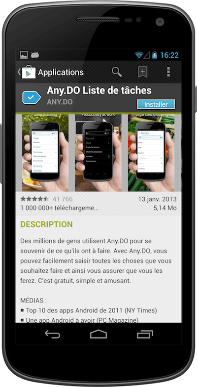 Spécificité Android : pour faire ressortir les mots-clés dans la description, il convient de les répéter environ 5 fois. Il est donc nécessaire de travailler son texte de manière spécifique pour le référencement sur le Play Store.