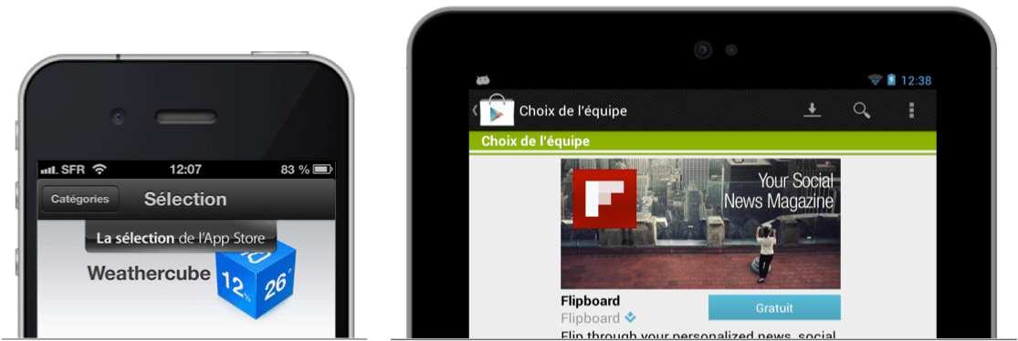 Si votre application n'est pas présente dans le top général des stores, vos utilisateurs la trouveront vraisemblablement par l'utilitaire de recherche. Là encore, il va falloir vous différencier de vos concurrents.