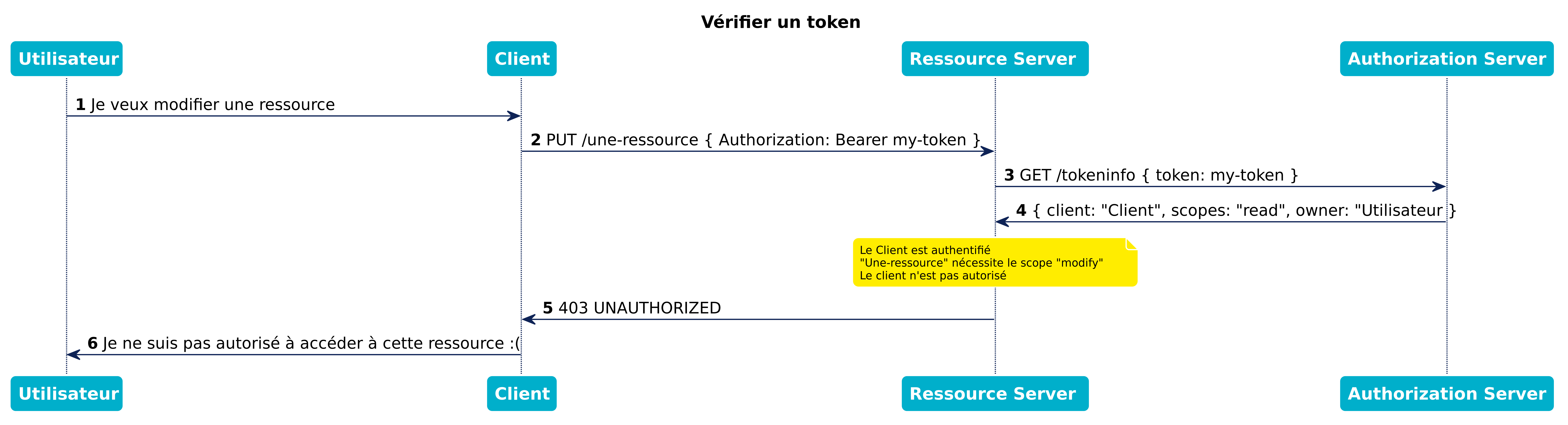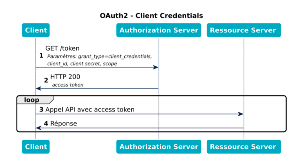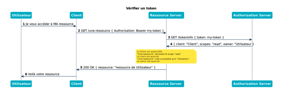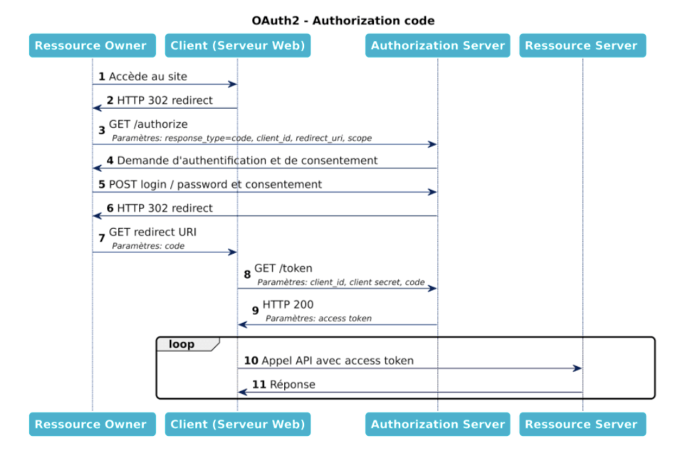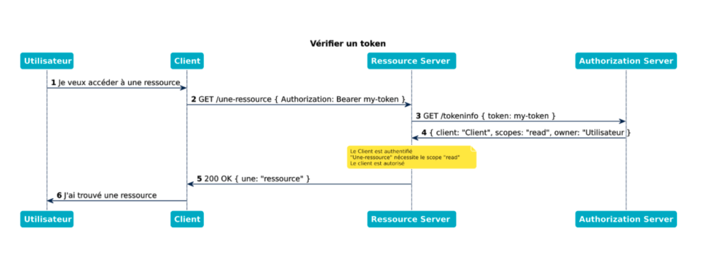• Resource Server (Serveur de ressources): le resource provider décrit plus haut, qui expose via une API REST les ressources auxquelles le Client veut accéder