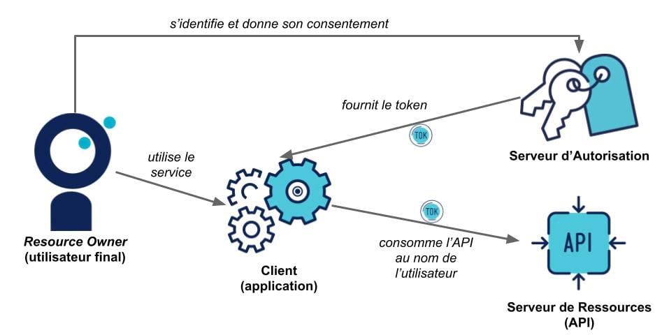 • L’Utilisateur utilise vos services, et a peut-être déjà suffisamment de droits pour consommer certaines ressources privées. Et il voudrait y accéder via l’application du développeur décrit précédemment.