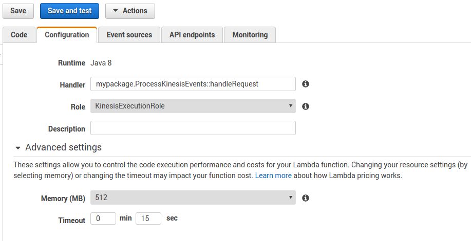 In our case, what matters here is the ability to connect easily Kinesis to a Lambda function. Lambda can behave as an event-driven compute service, such as new data getting into Kinesis. Therefore, a Lambda function can act as a consumer.