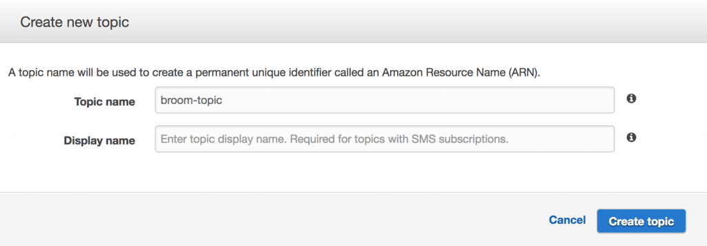 Remember to note the ARN of your topic, since you will be using it for the next step: