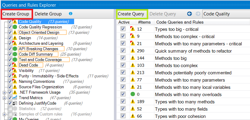 Even though NDepend rules are quite close to what we could consider as baseline rules I strongly recommend that you spend a bit of time sharpening the pre-built rules or write your own queries! You just have to create your custom group and then create your queries.