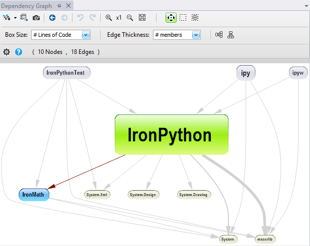 If you are not familiar with these graphics don’t be frustrated, usually no body does! So NDepend has tooltips to help you understand the various values. Basically the matrix and the graph both help you to figure out how assemblies, namespaces, classes, methods depend on each other’s.
