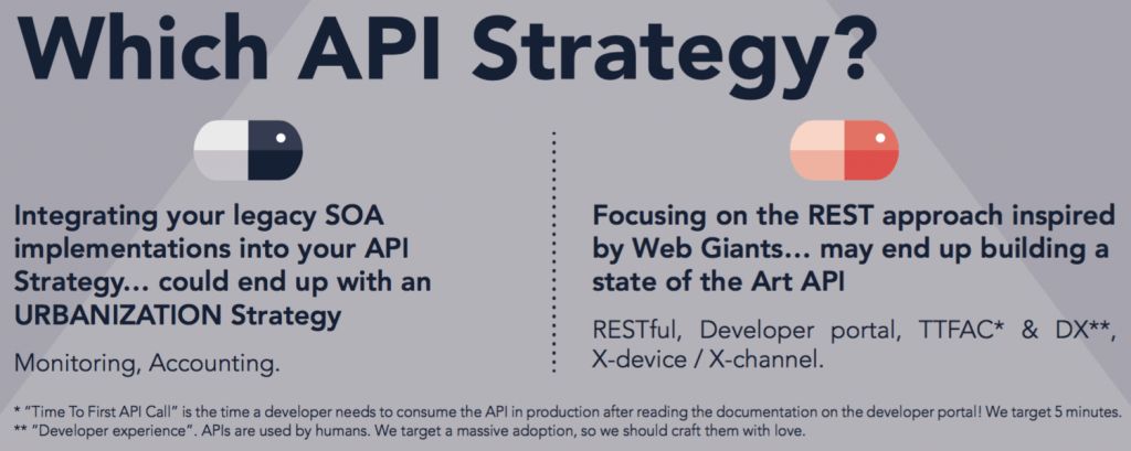 La stratégie API d’une entreprise se résume hélas parfois à l’achat d’une solution d’API Management. Le risque : l’API ne sort pas après plusieurs mois (années?), puisque les véritables impacts et enjeux, jusqu’alors ignorés, n’ont pas été adressés.