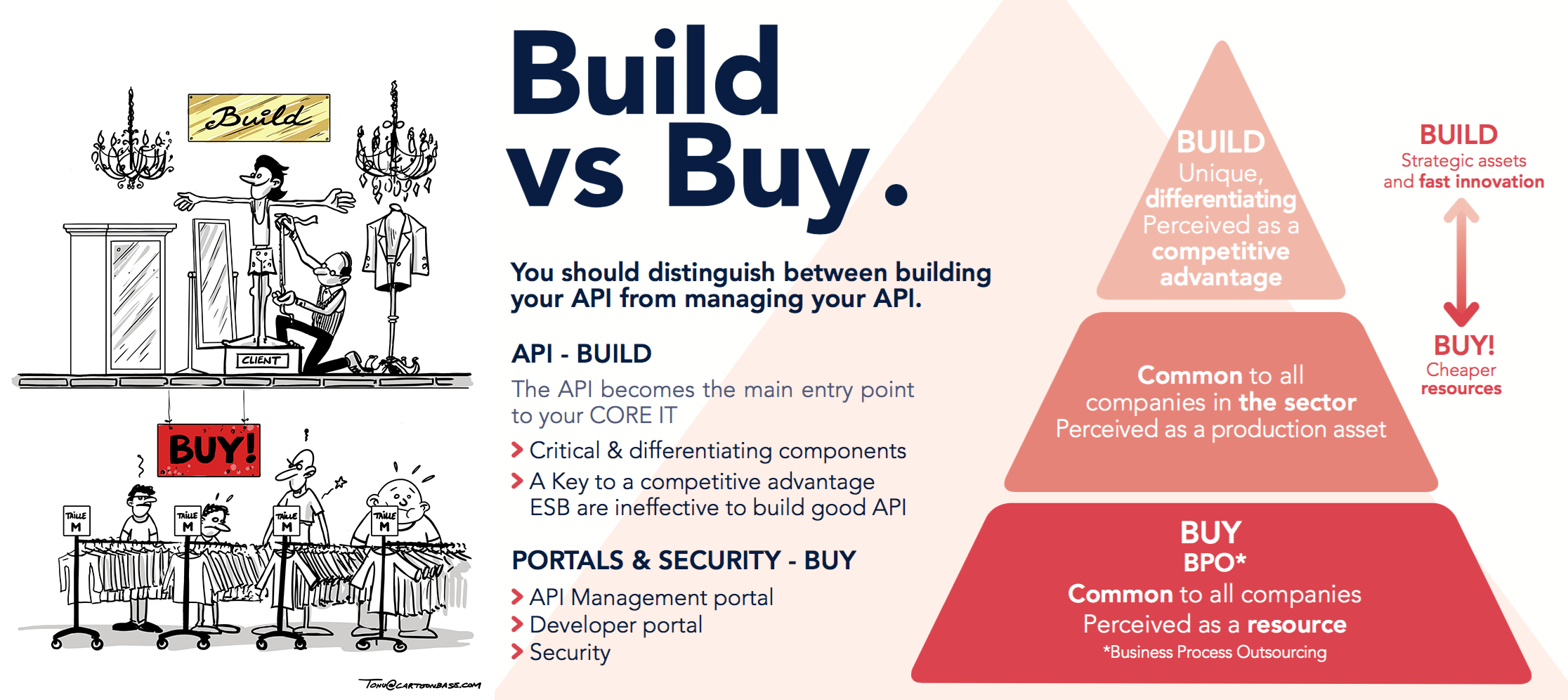 La réflexion Build vs Buy appliquée à l’API est illustrée sur la pyramide suivante :