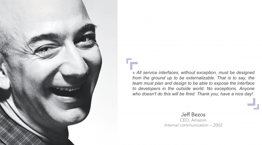 Nous pensons que l’API est le vecteur qui offre la capacité à industrialiser sa présence dans le digital. Les promesses sont :