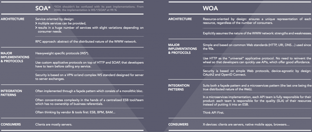 A noter qu’avec la WOA et REST, le Web « infiltre » la DSI en profondeur : les compétences doivent être adaptées pour accompagner votre stratégie API.