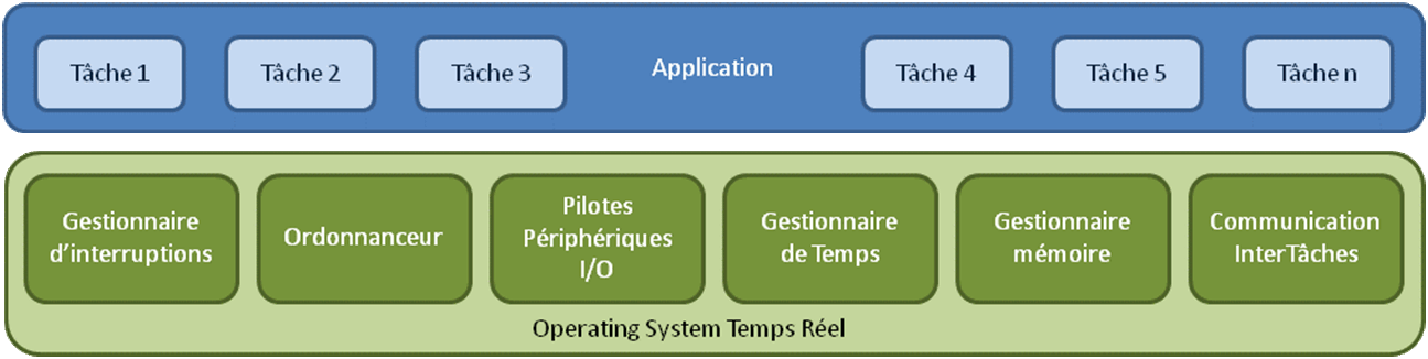 De nombreuses architectures de systèmes temps réel existent, mais nous aborderons ici la plus courante en deux couches : L’Operating System Temps Réel (OSTR) et l’application