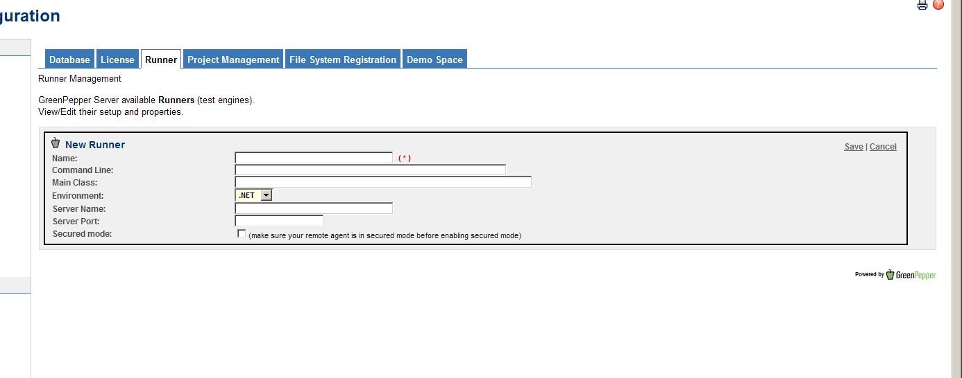 Pour faire exécuter les tests fonctionnels d'une page, Greenpepper dispose de 'Runner'. Ce sont des lignes de commande qu'il va lancer avec certains paramètres (templatisable) et dont il va attendre certains résultats. C'est ici que tout va se jouer (et ce fut notre principal champs de bataille)