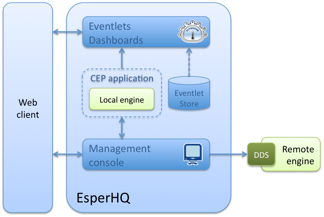 - A management console for hosted or remote Esper engines, using EsperDDS described below