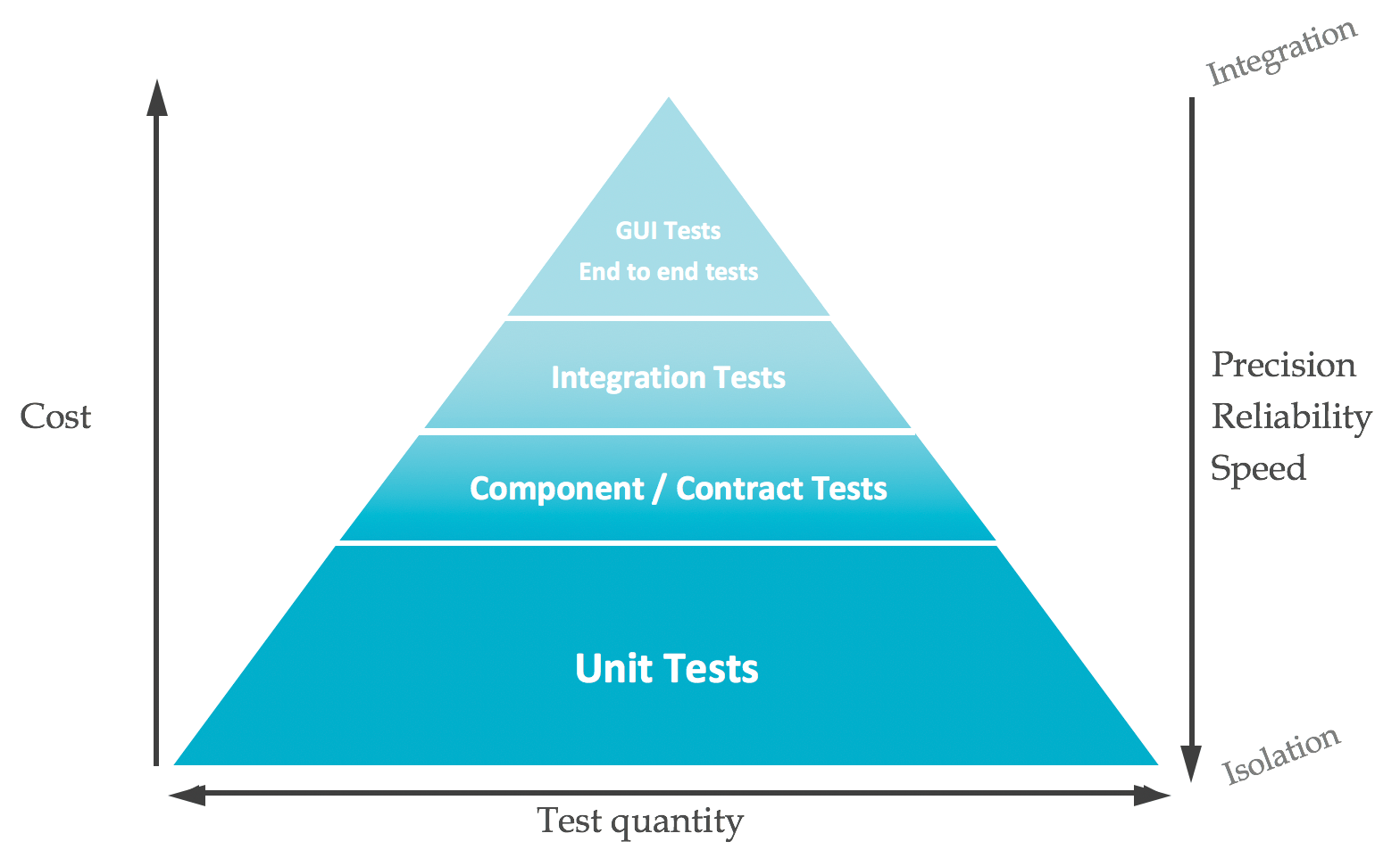 - Invest heavily in unit tests, which are cheap to write and provide the best feedback on your business code.