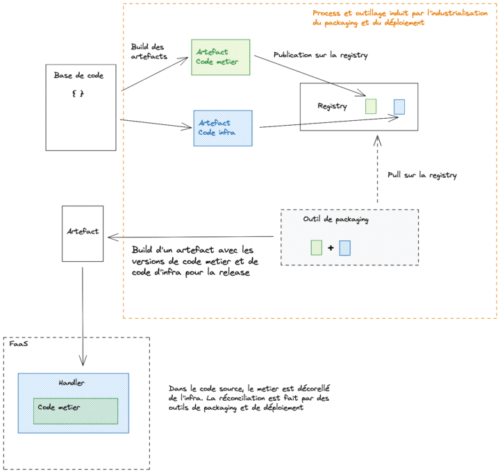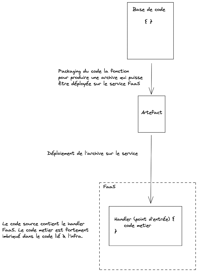 - Le point d'entrée des FaaS, appelé handler, ne doit contenir que du code de redirection vers le code métier.