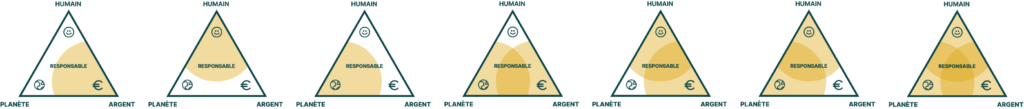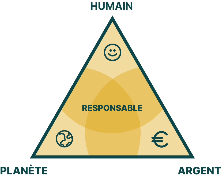 Ainsi, que pensez-vous de considérer les impacts d’une décision de manière plus responsable, en considérant une recherche d’équilibre entre les 3 angles du triangle ci-dessous :