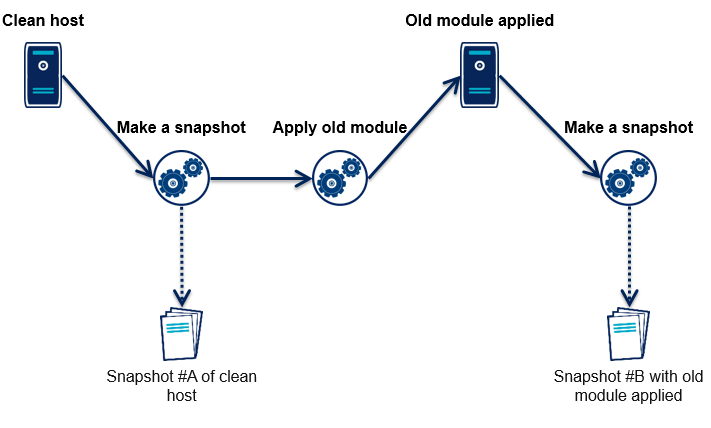 A partir de ces deux images, on extrait les différences. Puis on convertit ce diff en module Puppet basique qui nous servira d'outil d'audit.