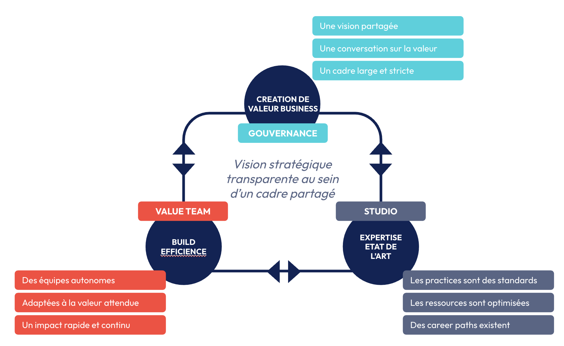 Au sein d’une digital factory qui nous est chère, le modèle opérationnel est pensé en continu. Le modèle opérationnel est un ensemble de règles, d’artefacts et de rituels.