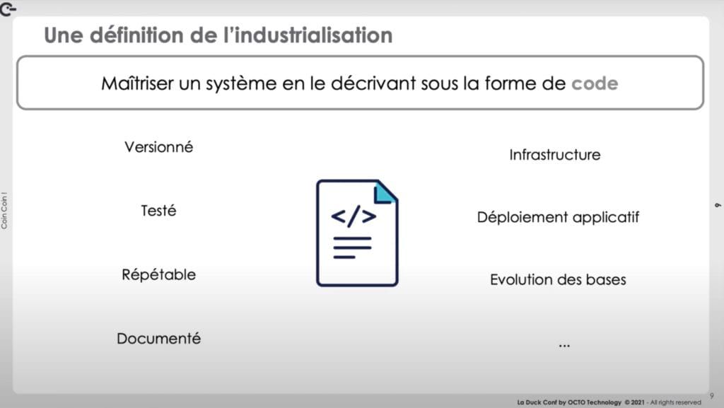 Industrialiser, c'est maîtriser un système en le décrivant sous la forme de code.