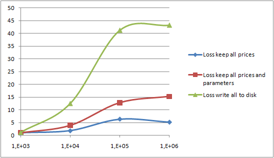 The following graph shows the loss of storing the intermediate results defined like hereunder, thru different scenarios