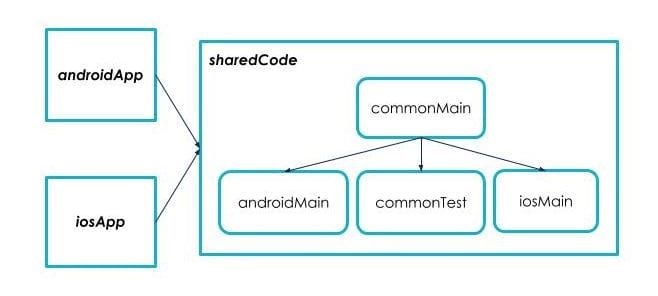 Le site officiel Kotlinlang explique bien les étapes de configuration pour les deux plateformes et pour résumer, l’architecture projet obtenue est la suivante :