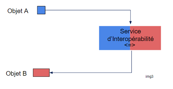 Le modèle retenu pour résoudre le problème est l’émergence de services et d’opérateurs spécialisés dans la conversion des données issues/reçues par les objets. Ces services peuvent prendre des formes variées, comme celui de la figure ci-dessus montrant un système de conversion de message entre deux objets. Un nouveau business apparaît ici, celui des “fournisseurs de services d’interopérabilité”.