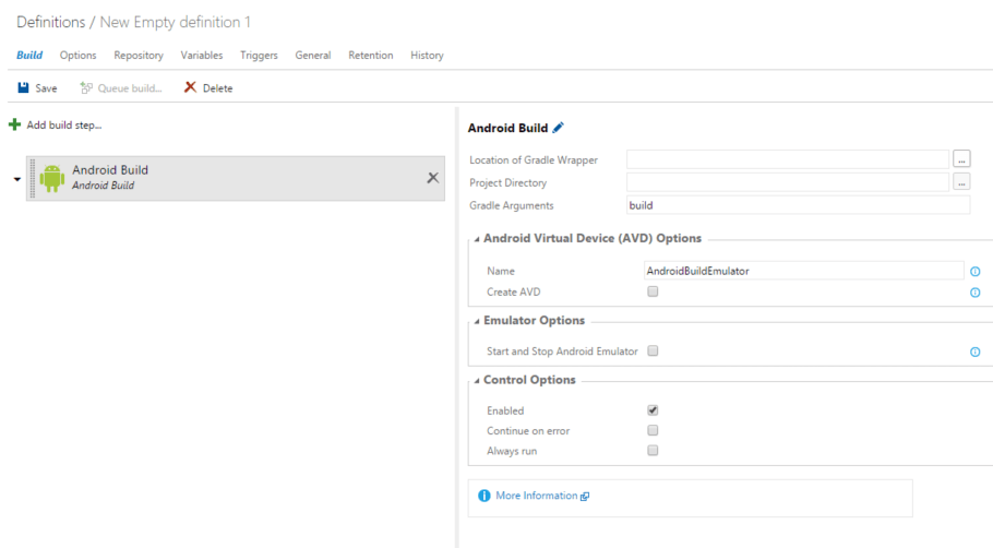 L'outil est assez jeune, de ce fait il est encore un peu limité. Si vous avez des Tests Unitaires à exécuter sur un émulateur Android, cela va devenir assez vite compliqué et coûteux. L'option de démarrer un émulateur, pour le moment ne fonctionne pas de manière immédiate comme sur Cloudbees. Le temps que cela soit corrigé, vous allez devoir provisionner une VM et y installer un émulateur Android, et faire tourner une VM sur Azure H/24 est assez onéreux.