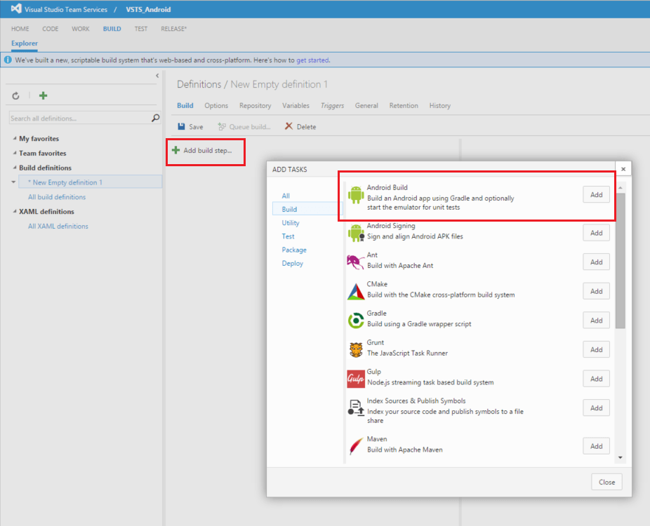 Visual Studio Team Services : Compiler vos applications Android avec VSTS