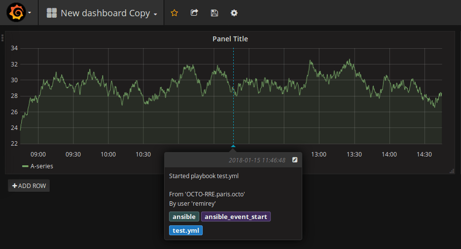 As all our deployments are performed through Ansible, the idea is to have Ansible create an annotation in Grafana everytime a playbook is executed.