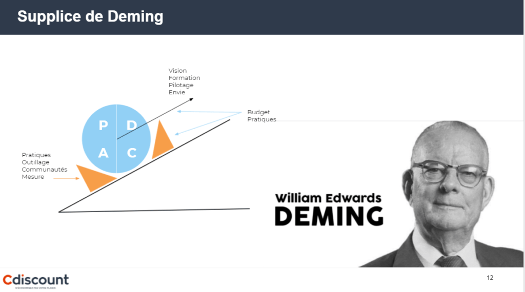A ce moment-là, Cdiscount a identifié une grande marge de progression. Pour rejoindre l’élite, Christophe va prendre en compte 2 principes : le supplice de Deming et la Gamification.