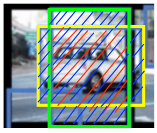 Pour mieux comprendre comment est calculé cet indice, zoomons sur l’image et concentrons-nous sur les anchor boxes vert et jaune :