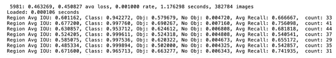 - Region Avg IoU : l’Intersection over Union ;